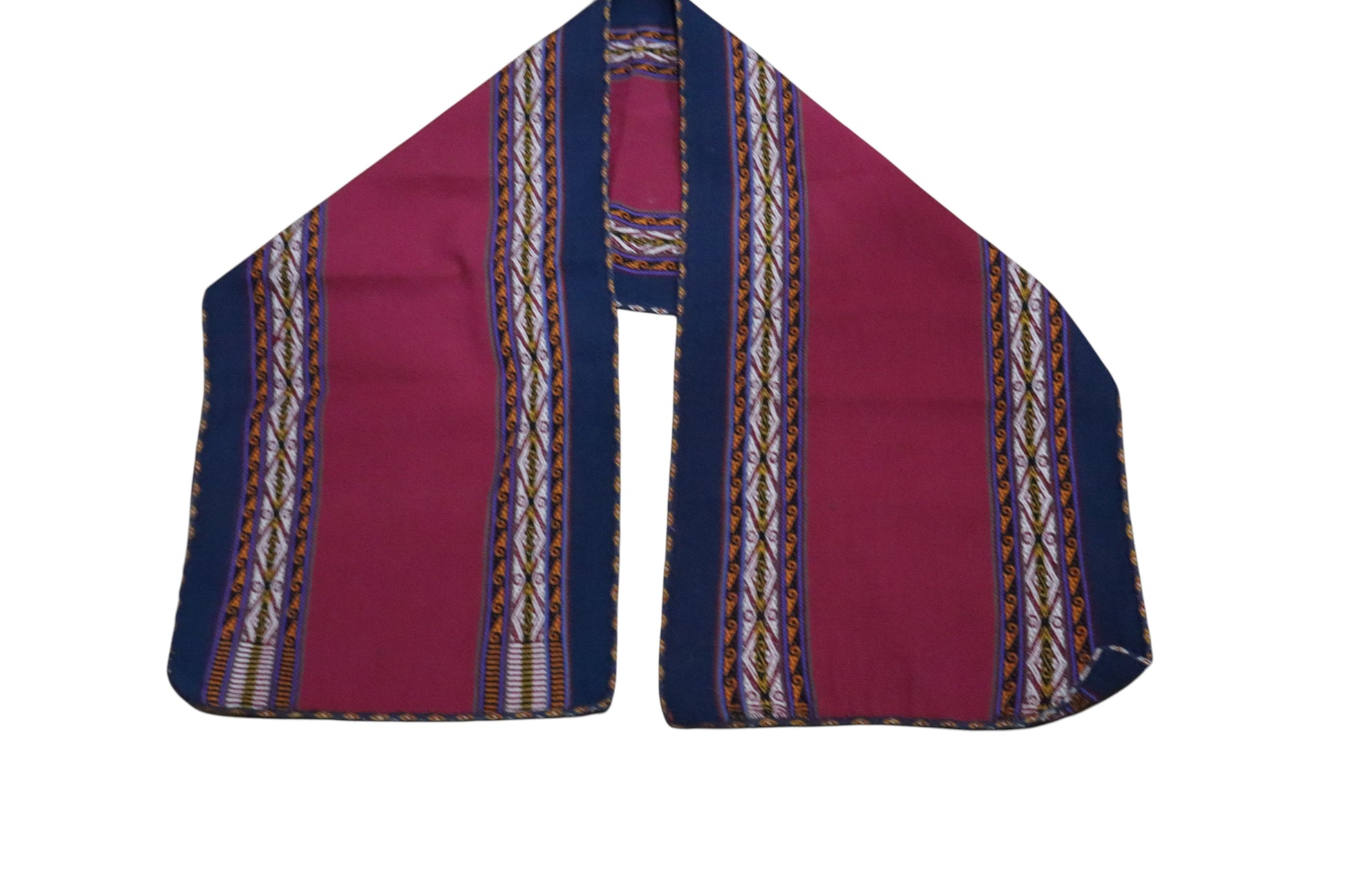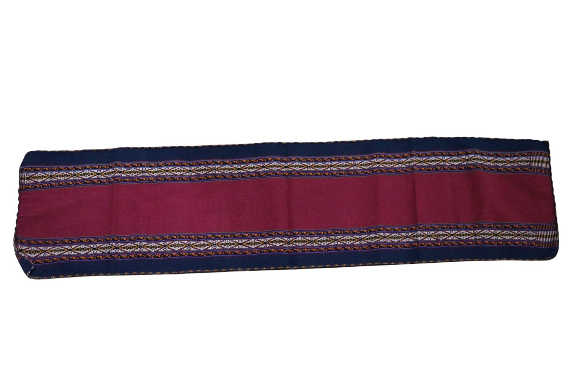 This handmade table runner is a one-of-a-kind piece, crafted by artisans from Chinchero, where each design reflects the cultural identity of this Andean community, known as the Land of the Rainbow. Along the edges, the Nawi Awapa motif (“the eye of the princess”) stands out as a traditional symbol unique to Chinchero, believed to provide protection and spiritual connection within the textile.